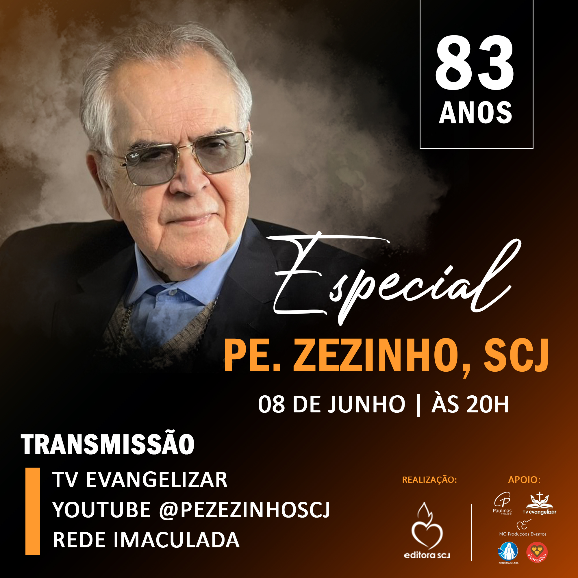 No dia 08 de junho de 2024, Pe. Zezinho, scj, um dos maiores comunicadores da Igreja Católica de todos os tempos completará 83 anos de vida. Editora SCJ, Paulinas-COMEP, TV Evangelizar e Rede Imaculada se uniram para realizar um momento que será artístico, musical, orante e festivo.