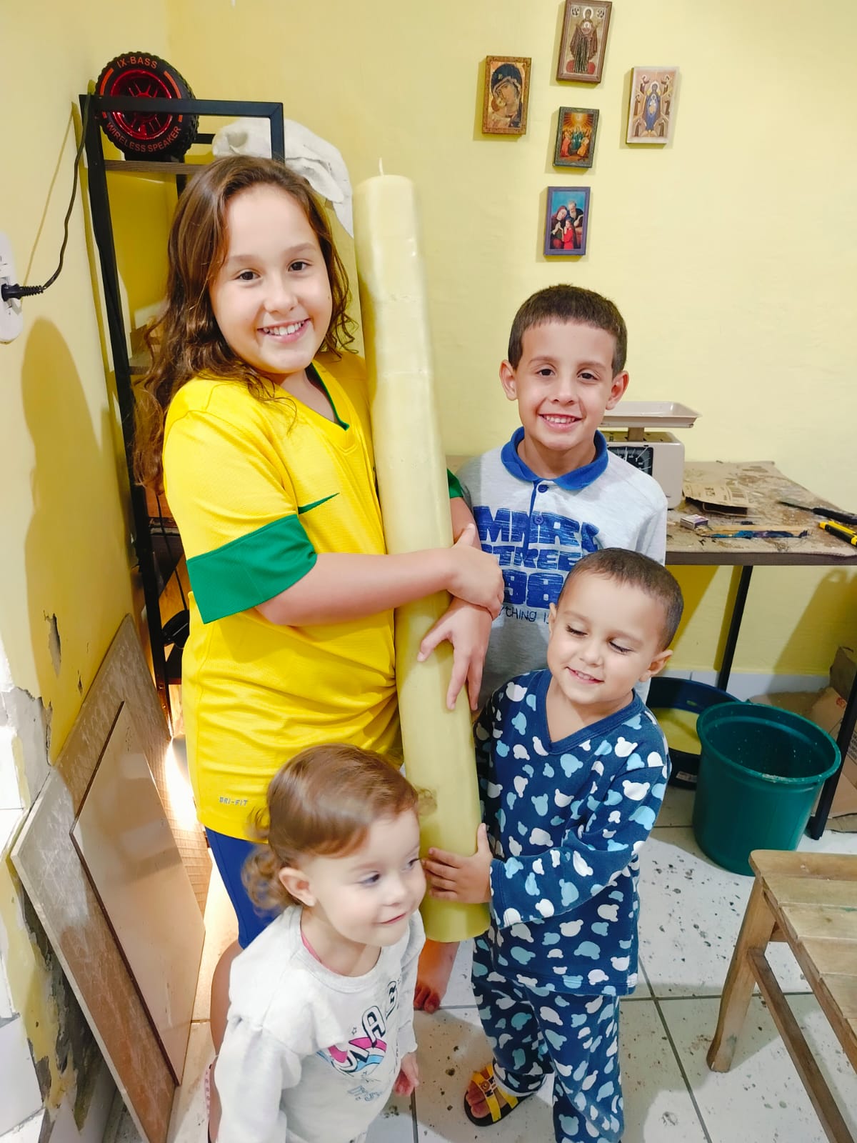No entanto, é desses desafios que nascem virtudes. A família percebe na própria produção das velas uma escola diária. “No processo de purificação da cera, aprendemos sobre limpeza interior; no derretimento e secagem, sobre espera e paciência; no acabamento, sobre zelo e responsabilidade”, explica. “São virtudes que nossos filhos levarão para a vida toda”.