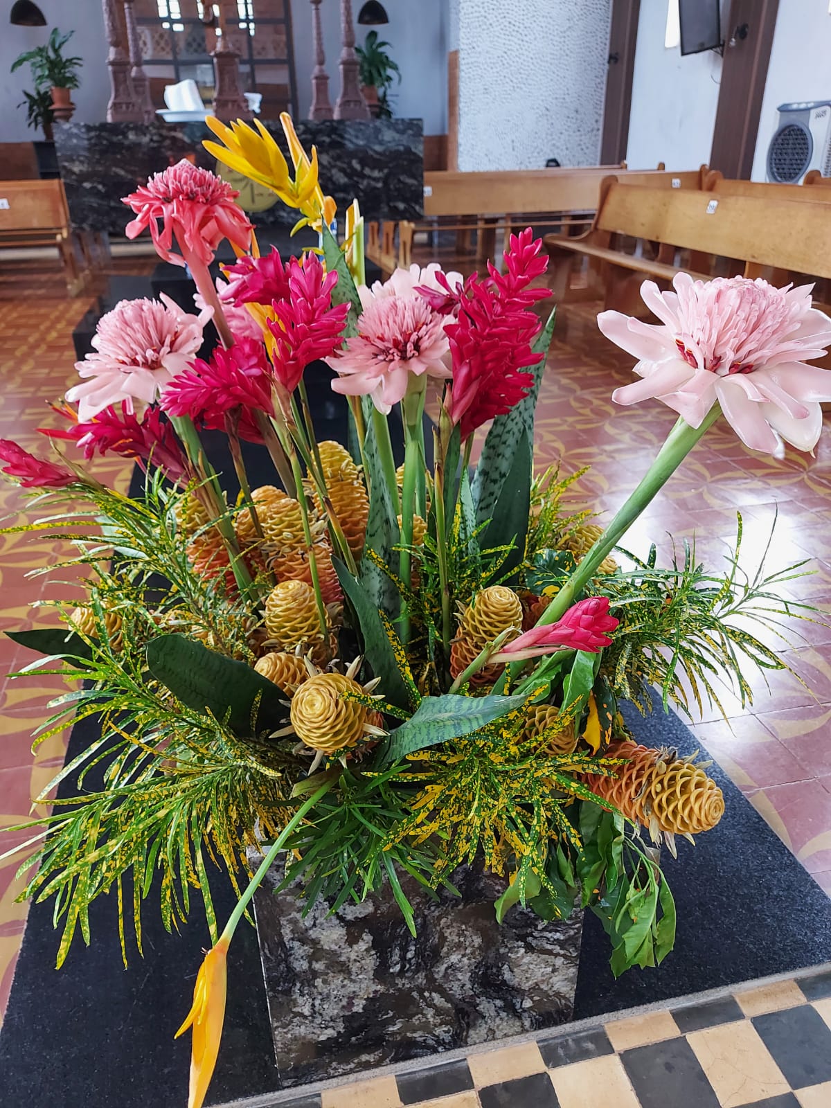 “Quando a gente viu que 99% dos objetos usados para a fé são produzidos com petróleo e produtos não renováveis, nos vimos obrigados a fazer diferente. Decidimos plantar, e quem quis levou uma muda para casa. Hoje temos uma coleção de flores e frutas tropicais em nossos jardins e produzimos todas as velas e hóstias que usamos nas missas”, explica o pároco.